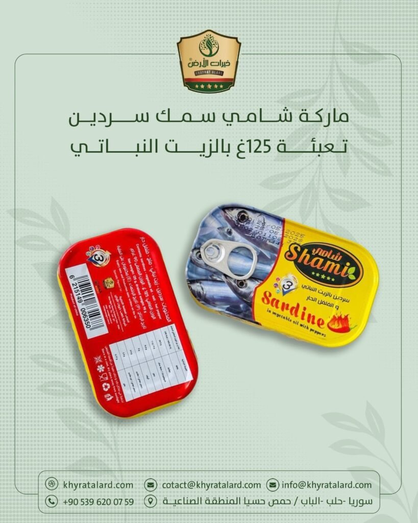 ماركة شامي – سردين 125غ بالزيت النباتي … جودة عالية، طعم أصيل، وفوائد صحية في كل لقمة.